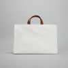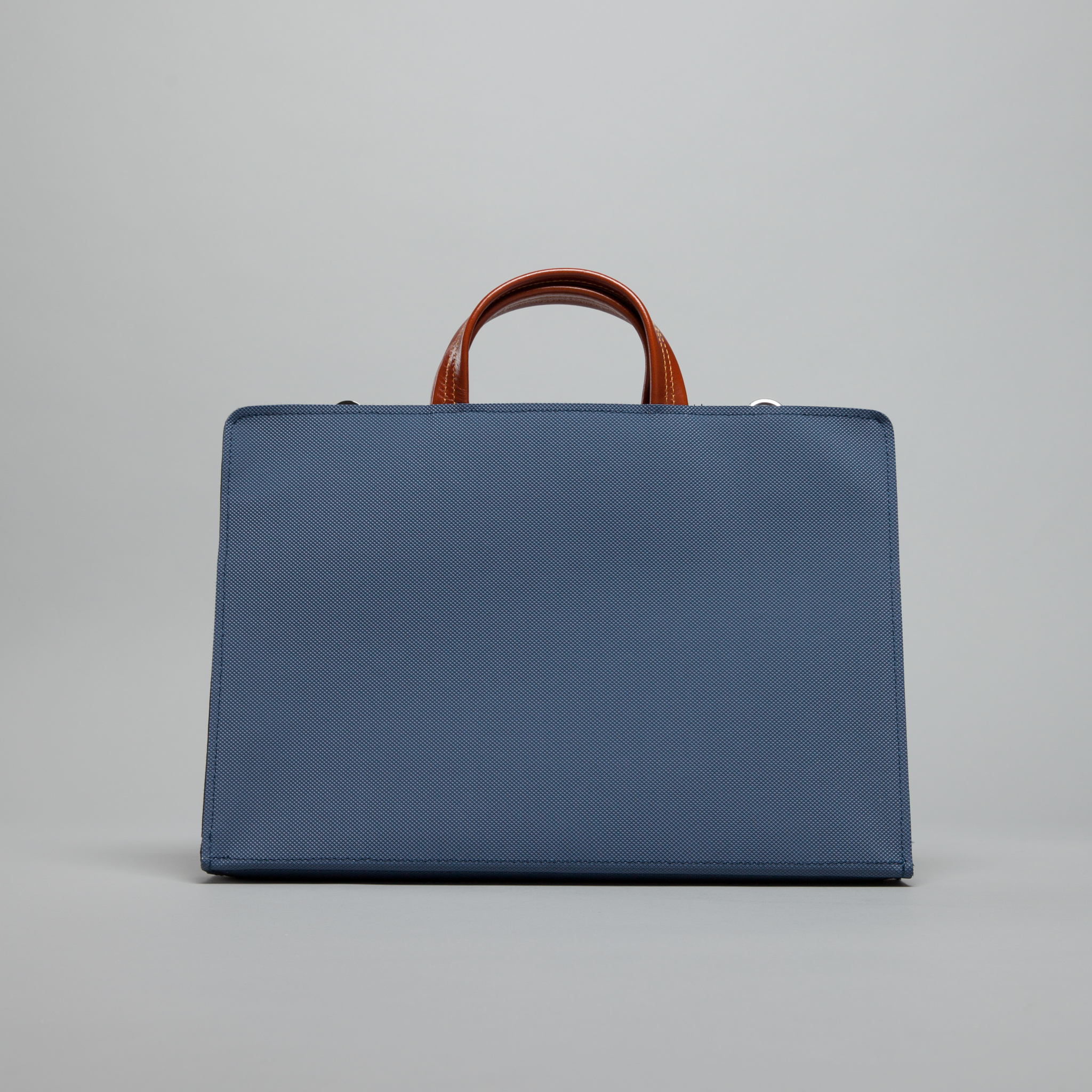 This bag made from synthetic leather cover contrasted with genuine leather handle, practical zip and shoulder strap.
