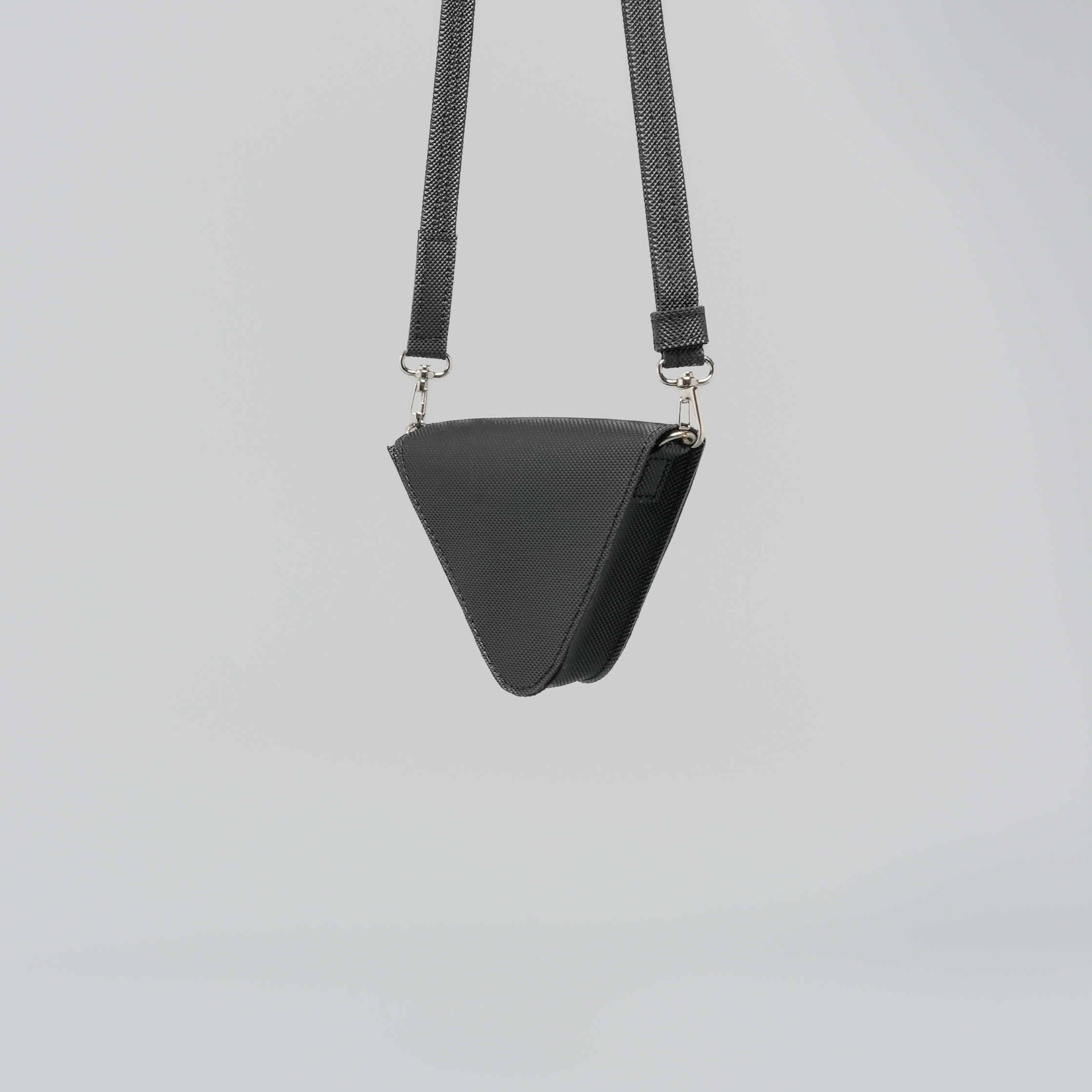 The circular pattern inspired by eclipse, made from synthetic leather.